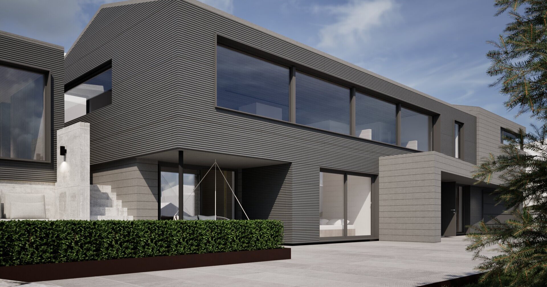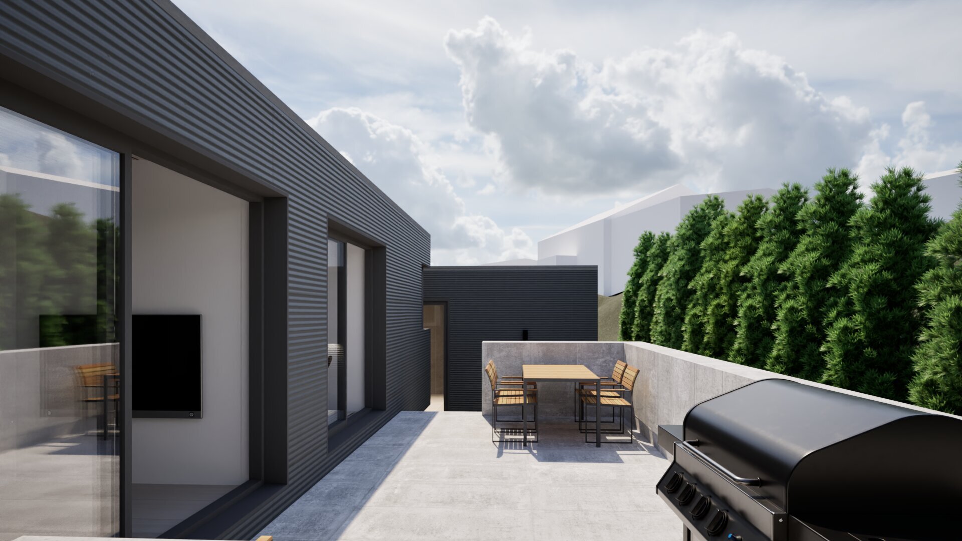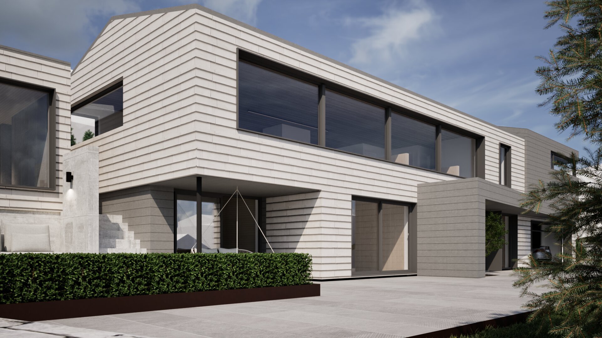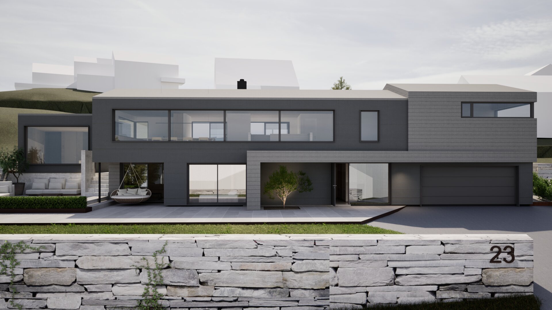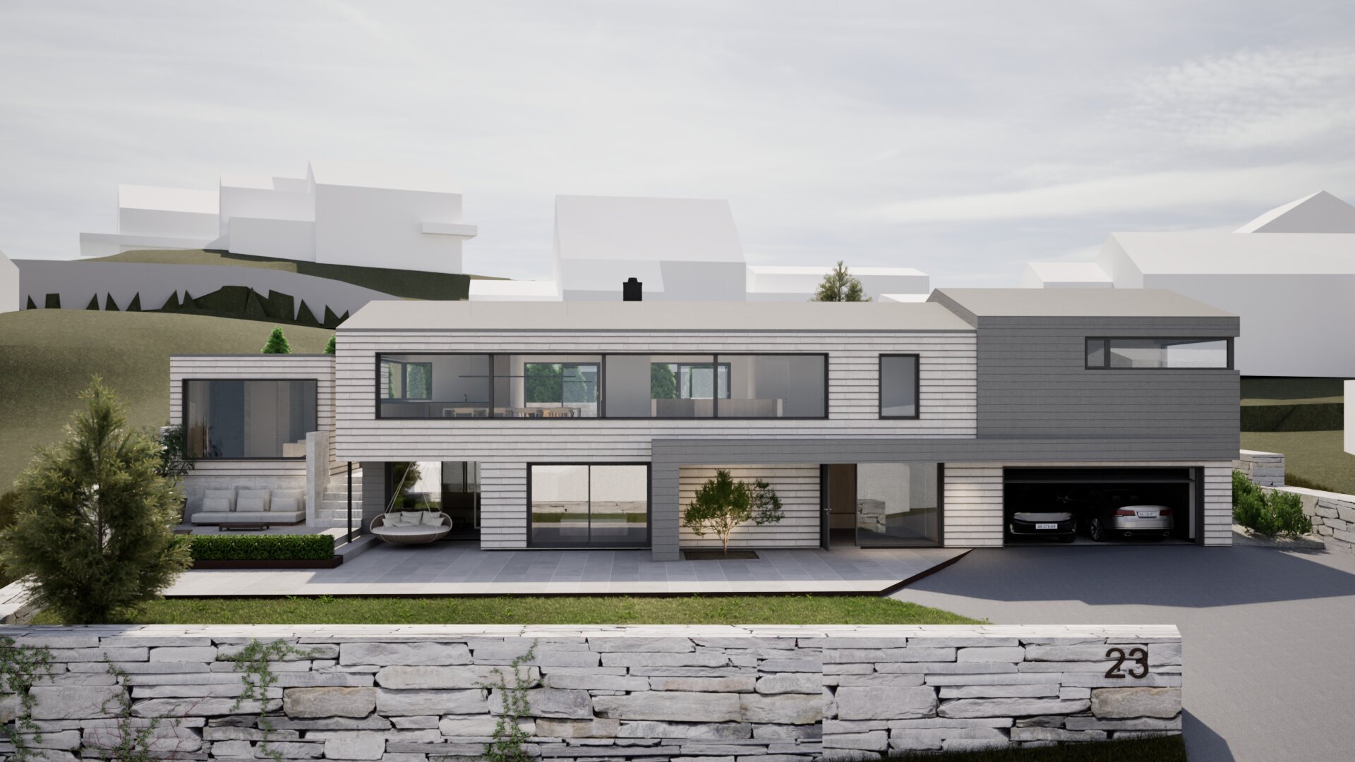 Konseptskisse av visuell oppgradering av enebolig med nye tilbygg